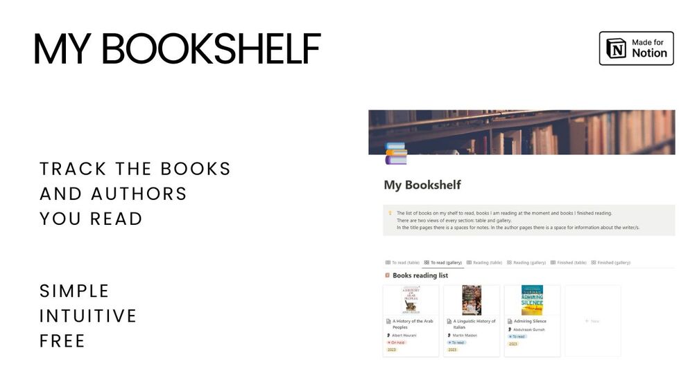 My bookshelf is a free reading list template for Notion.